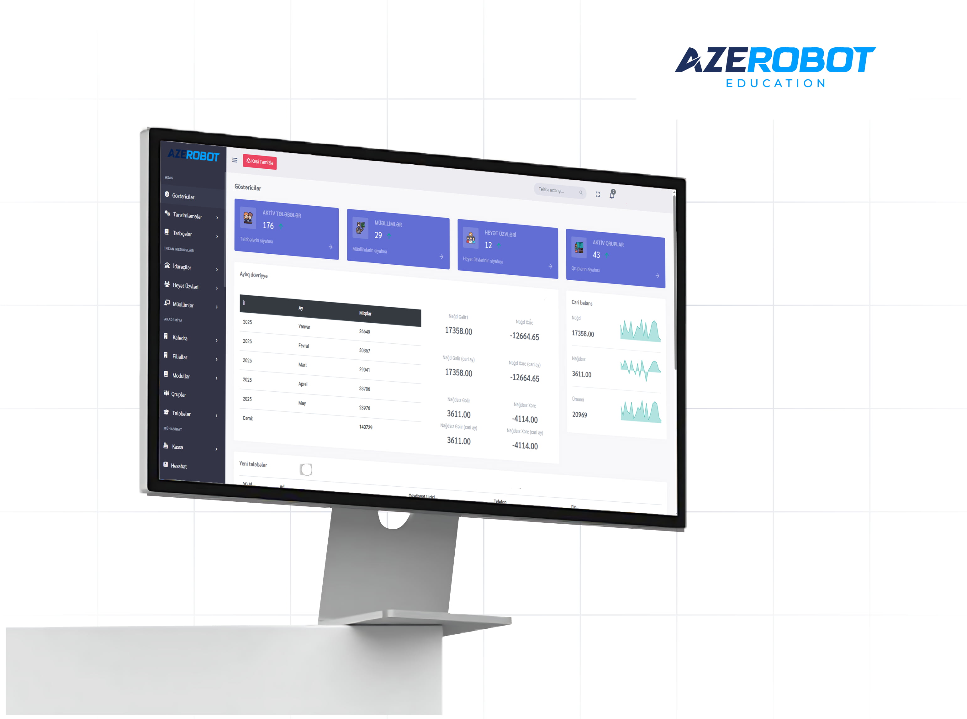 Azerobot üçün xüsusi olaraq hazırlanmış CRM sistemi kursların idarə olunmasını sadələşdirir. Sistem vasitəsilə tələbələrin qeydiyyatı, qrupların idarə olunması, ödənişlərin izlənməsi və müəllimlərin iş qrafikinin nəzarəti rahat şəkildə həyata keçirilir.